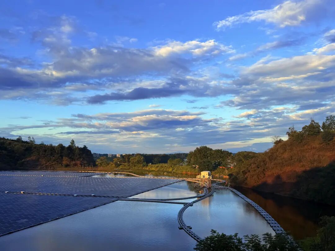该项目的创新之处在于采取“渔光互补”的模式,该模式采用漂浮式光伏建设方案,实现 “水上发电、水下养殖”。这种模式有效减少了水库水量蒸发,抑制了藻类过度繁殖,改善了水质,为渔业创造了优良环境。同时,采用 “人放天养”的生态模式,不投饵、不喂料、多次诱捕,可以提升鱼类的品质。
