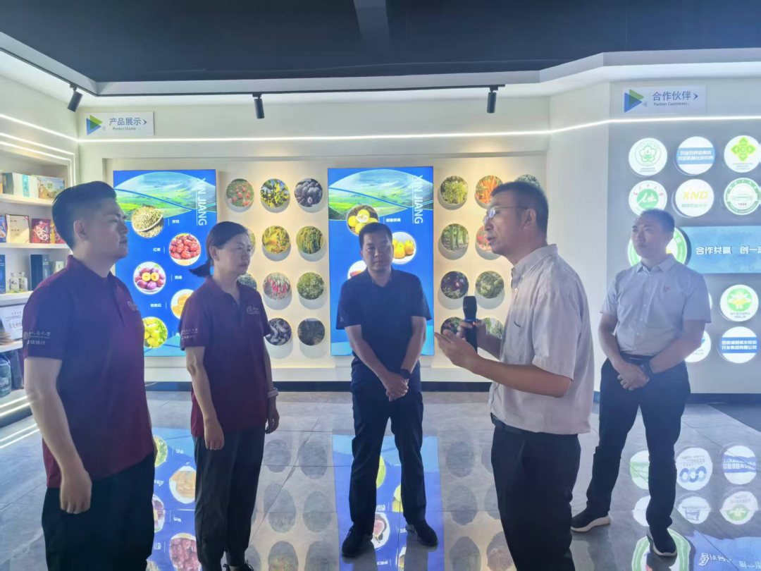 随后,调研团前往喀什妃尝香农业发展有限公司,聚焦农业产业发展开展调研。在企业展示区,调研团成员与企业负责人交流运营脉络和发展经验。