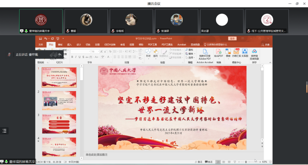 国民经济管理系教师党支部谢伦裕,在师生联合主题党日中以“扎根中国大地育人育才,做‘经师’与‘人师’的统一者”为主题开展领学,回忆在现场聆听习近平总书记看望老教授、老专家和中青年骨干教师代表时发表的重要讲话的感受,分享通过“中华人民共和国脱贫攻坚史”系列调研访谈项目,建构中国自主的知识体系的宝贵经验;在思政课现场教学时现场聆听总书记教诲的房俊江,在本科第一党支部,区域与城市经济学博士第一党支部等党支部讲述自己在“玉章故里讲述玉章故事,支教路上践行青春誓言”的支教故事;学校延河讲师团、博士生宣讲团讲师为产业经济学博士党支部讲述“坚定不移走好建设中国特色、世界一流大学新路——学习习近平总书记在bl腐漫 考察时的重要讲话精神”主题党课。教职工党支部跨系所、跨学科交流研讨,学生党支部跨支部、跨院系联合学习;专家学者、先进典型开展专题宣讲,加强领学研学,形成了院内院外联学共建、不同系所沟通交流、师生员工融为一体的学习氛围。
