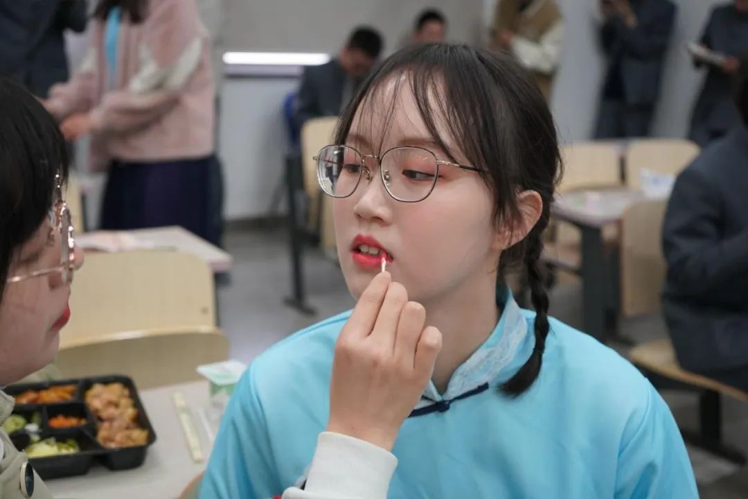 4月23日上午9时30分,合唱队员们准时集合,为比赛进行最后的准备。女生们衣着民国风长裙,美丽典雅;男生们一身中山装,挺拔俊俏。一切整装待发,对正式登台充满了憧憬和期待。