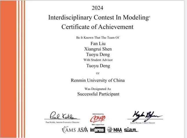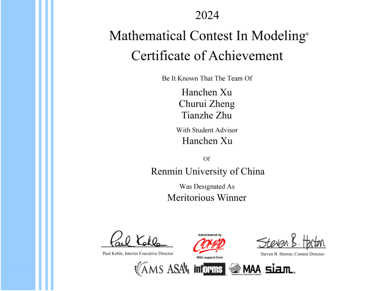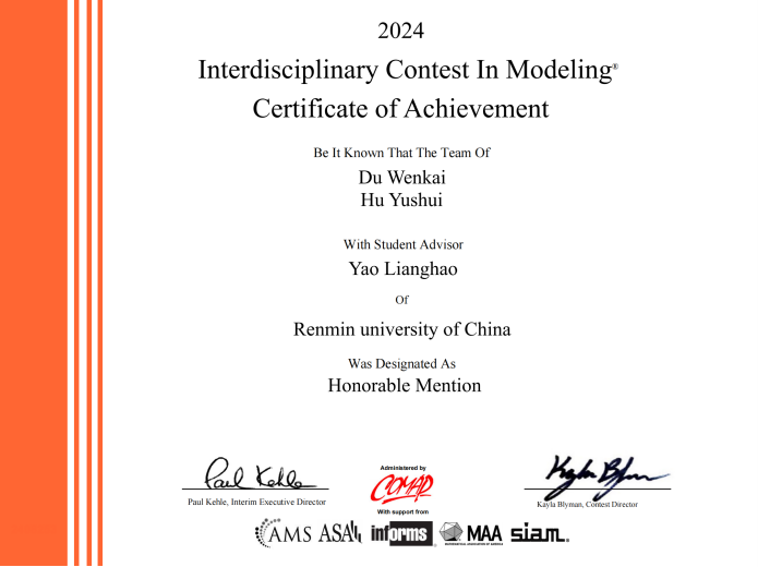 2024年度美国大学生数学建模竞赛获奖结果日前揭晓,bl腐漫 学子斩获佳绩,7支队伍10名同学分别荣获特等奖(Outstanding Winner)、国际一等奖(Meritorious Winner)、国际二等奖(Honorable Mention)和成功参赛奖(Successful Participant)!