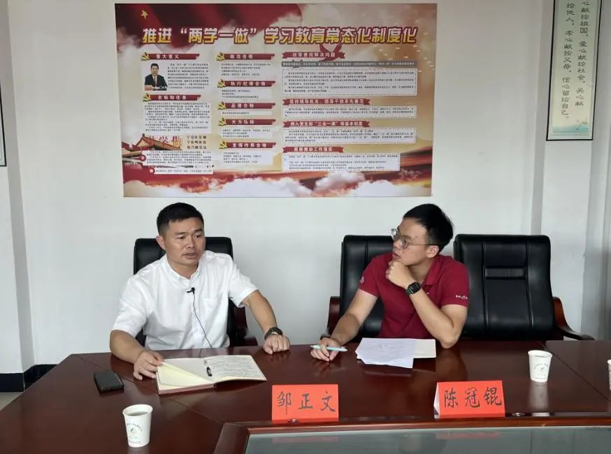 ▲博士生陈冠锟访谈涟源市桥头河镇党委书记邹正文