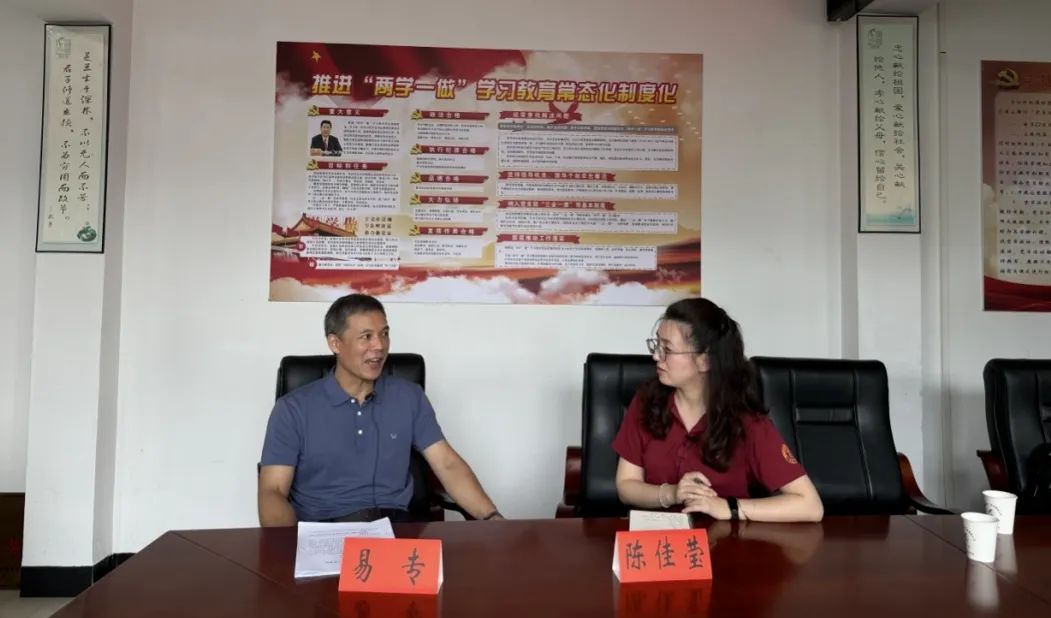 ▲访谈团陈佳莹老师访谈涟源市委常委、政法委书记易专(原扶贫办主任)