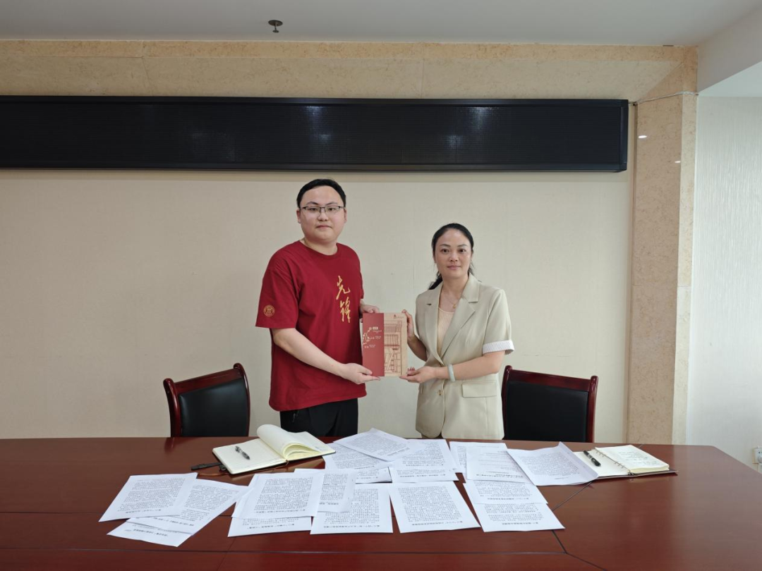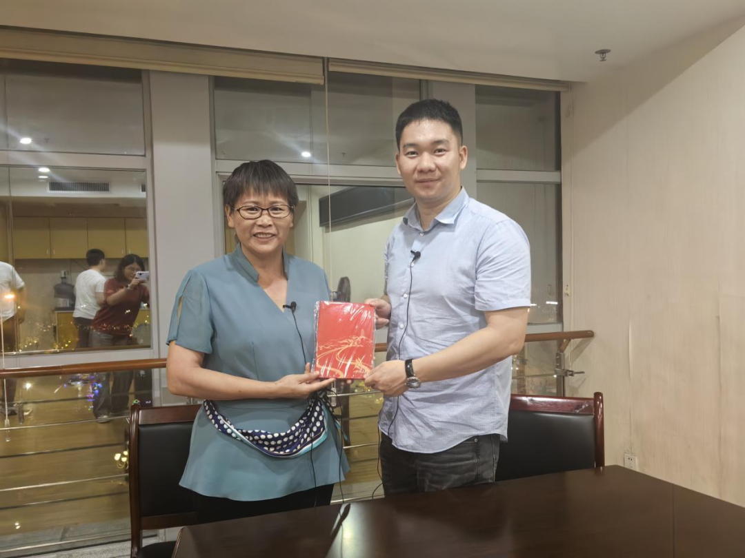 ▲王雨桉向富川瑶族自治县农业农村局局长(原乡村振兴局局长)尹宁赠送纪念品