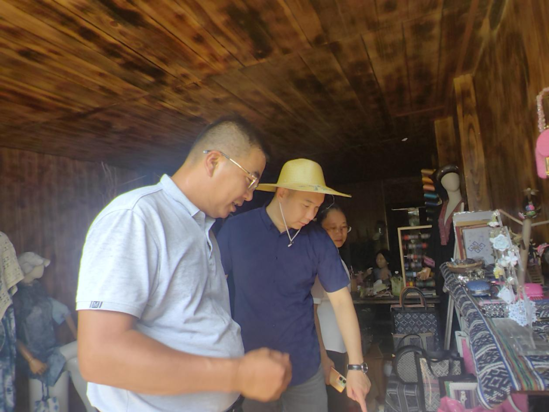 ▲调研团师生查看富川瑶族自治县柳家乡茅刀源村民族特色商品