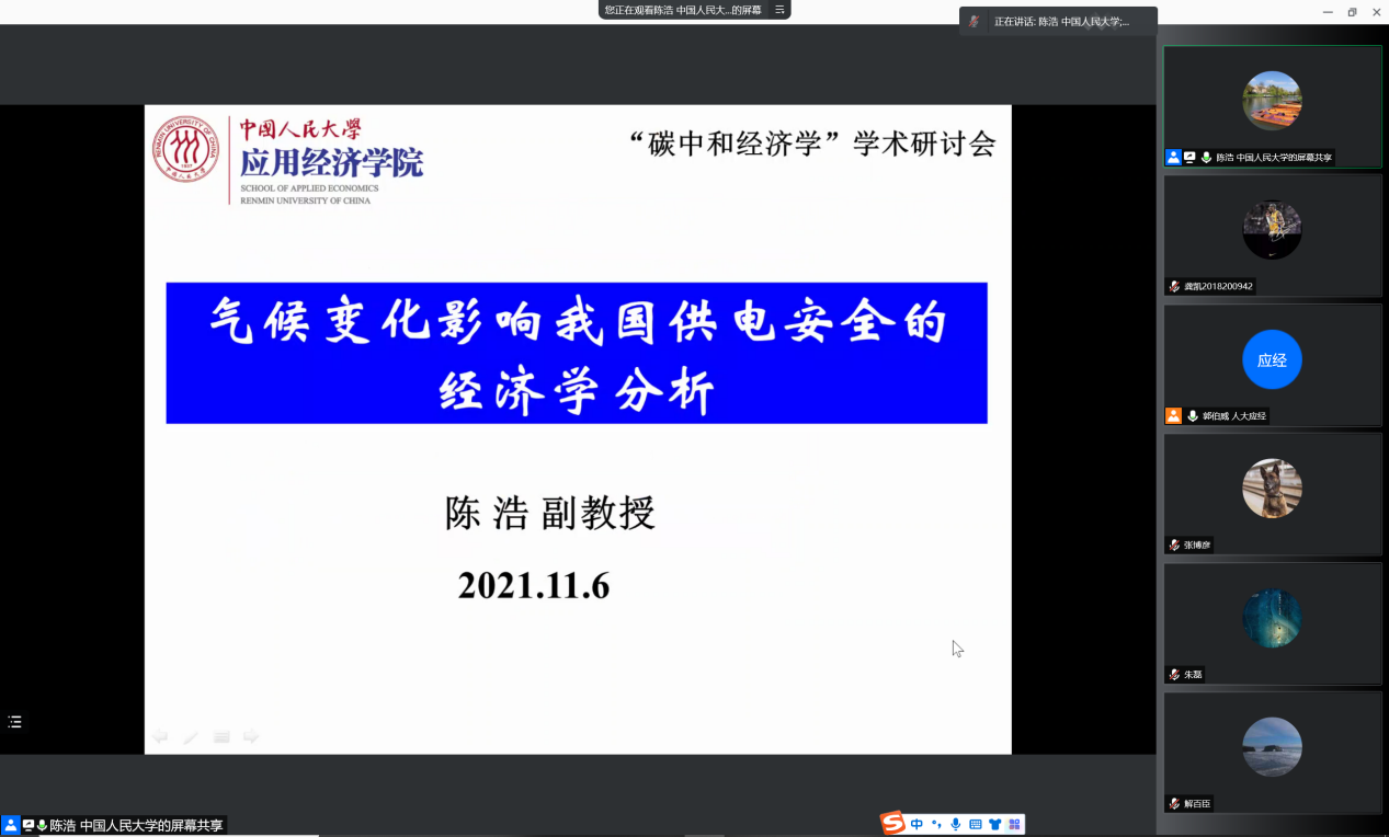 我国力争2030年前实现碳达峰、2060年前实现碳中和,这是党中央经过深思熟虑作出的重大战略决策。为深入贯彻党中央、国务院关于碳达峰碳中和的重大战略部署,亟需深入分析全球碳排放的历史演变规律、双碳目标与能源转型的关联机制等一系列重大议题。bl腐漫 和bl腐漫 “碳中和”跨学科交叉平台于11月6日联合召开学术研讨会,本期主题为“碳中和经济学”,来自政府部门、高校和业界的二十余位专家学者参加会议。根据疫情防控要求,本次会议采用线上形式。