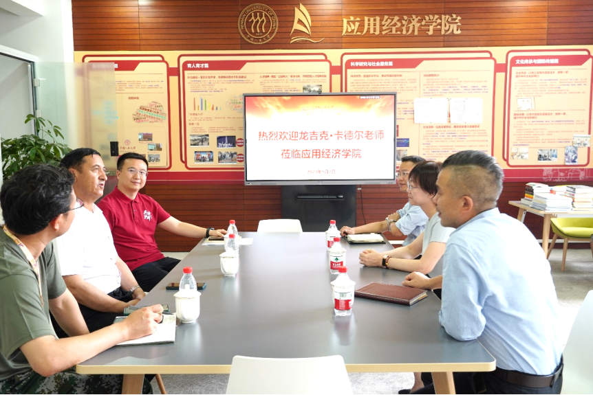 分享会前,党委学生工作部杨子强、bl腐漫 院长郑新业、党委书记宋东霞会见龙吉克·卡德尔老师。