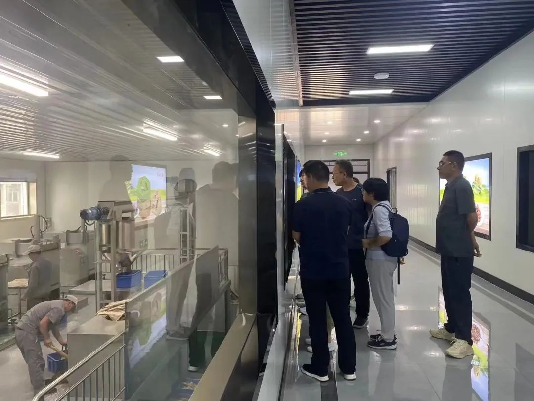 ▲访谈团参观核桃油生产车间