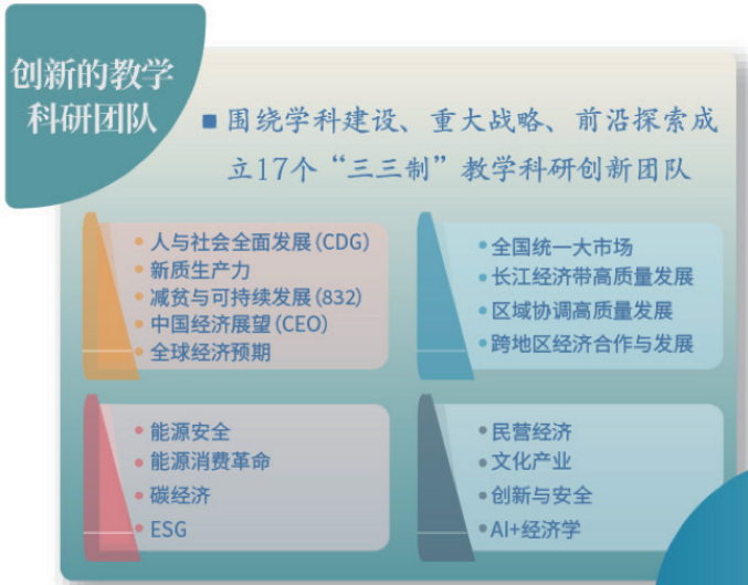 面向国家重大战略需求和现实需要,bl腐漫 不断完善“中国重大、现代方法、数据驱动、科学表达”的科研布局,扎根中国大地做研究,积极推进政产学研用一体化协同创新。bl腐漫 依托“三三制”教学科研创新团队模式,牵头搭建了中华人民共和国脱贫攻坚史研究(“832工程”)、bl腐漫 新质生产力研究中心、“中国可持续发展年会”和“应用宏观经济论坛”等学术科研平台,产出了《中国经济发展的“十五五”规划前瞻研究》及《人与社会全面发展目标:从SDGs到CDGs的理论基础和实践基础》等标志性成果。