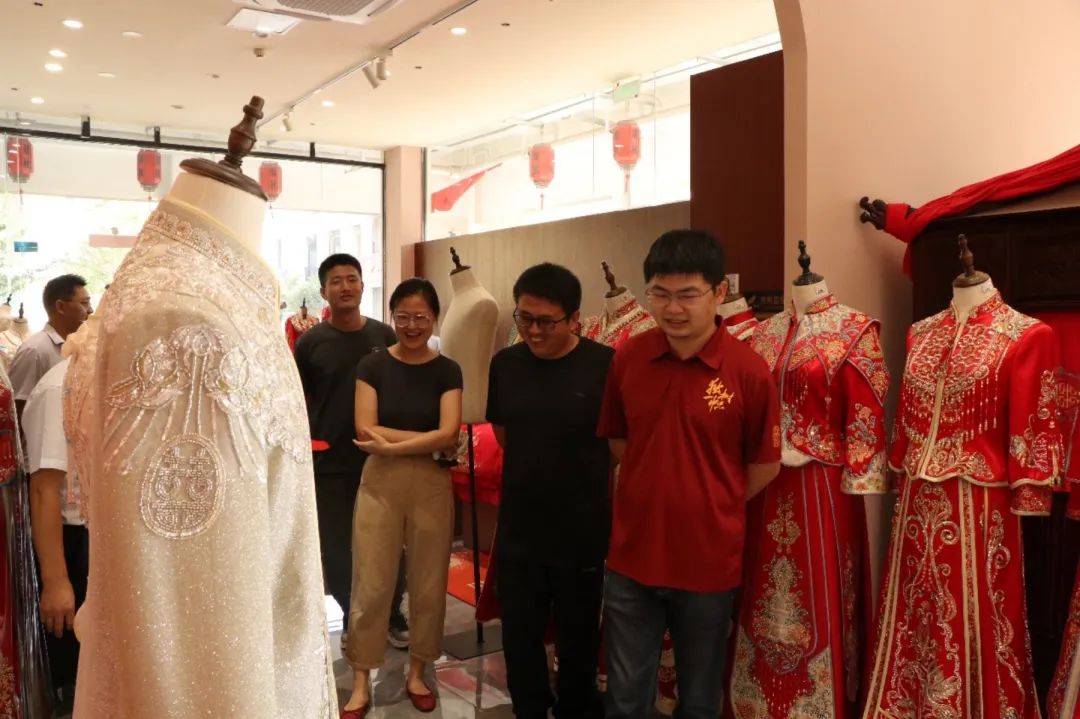 传承队一行下午来到裕安区西北部的丁集镇,这里正在打造“中国·丁集婚纱特色小镇”。2018年丁集镇紧抓苏州婚纱产业转移机遇,大力开展招商引资工作,积极对接返乡企业落地,激起了苏州婚纱礼服企业返乡创业的热潮。截至目前,丁集镇全镇婚纱礼服行业及上下游产业链企业500余家,其中婚纱礼服生产经营企业400余家,婚纱礼服电商销售店铺600余家,全镇婚纱礼服产业年产值达24亿元,婚纱礼服年发出量近500万件,日均婚纱礼服发出量约1.3万件,全镇婚纱产业从业人员超1.5万人,人均工资水平达到每月8000元,其中带动500多户脱贫户通过创业、就业实现增收,生活水平不断提高。丁集镇正逐步形成以婚纱为主导的产业型特色小城镇。为推进婚纱产业高质量发展,正按照国家级特色小镇标准,融合婚纱礼服设计、生产加工、婚纱产品展示、电子商务、现代物流、婚纱摄影、婚庆文化、旅游等功能,设计打造返乡创业重镇和婚纱特色小镇。