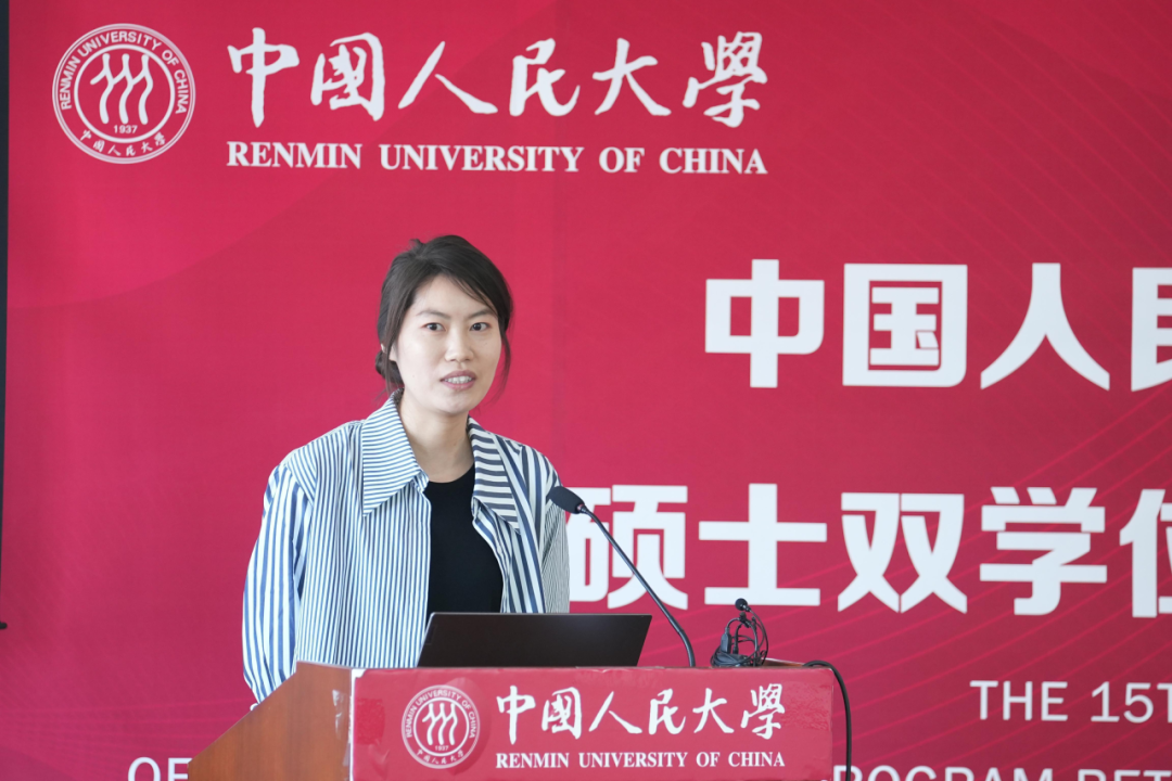 九州大学经济学研究院留学生国际交流担当储梅芬详细地回顾了两校自2008年硕士双学位项目建立以来长期稳定的交流和往来访问历史,并从项目建立、两校师生互访动态、学生培养情况等方面,阐述和展示了该合作项目的运行现状和取得的丰富进展。