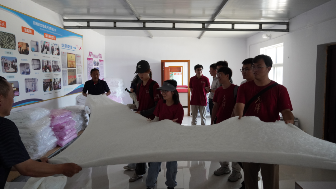调研团队来到寇家塬镇调研当地桑蚕丝产业,实地考察桑树种植园和武荣蚕丝开发有限公司。吴堡县种桑养蚕历史悠久,蚕桑产量高质量好。近年来,县委县政府着眼于农民增收,挖掘特色优势,加大对蚕桑产业的扶持力度,为群众的脱贫致富做出了重要贡献。一方面对养蚕户给予补贴,对蚕桑加工业进行专项扶持,另一方面通过项目捆绑政策,通过陕西省县域重点科技项目带动蚕桑产业发展。