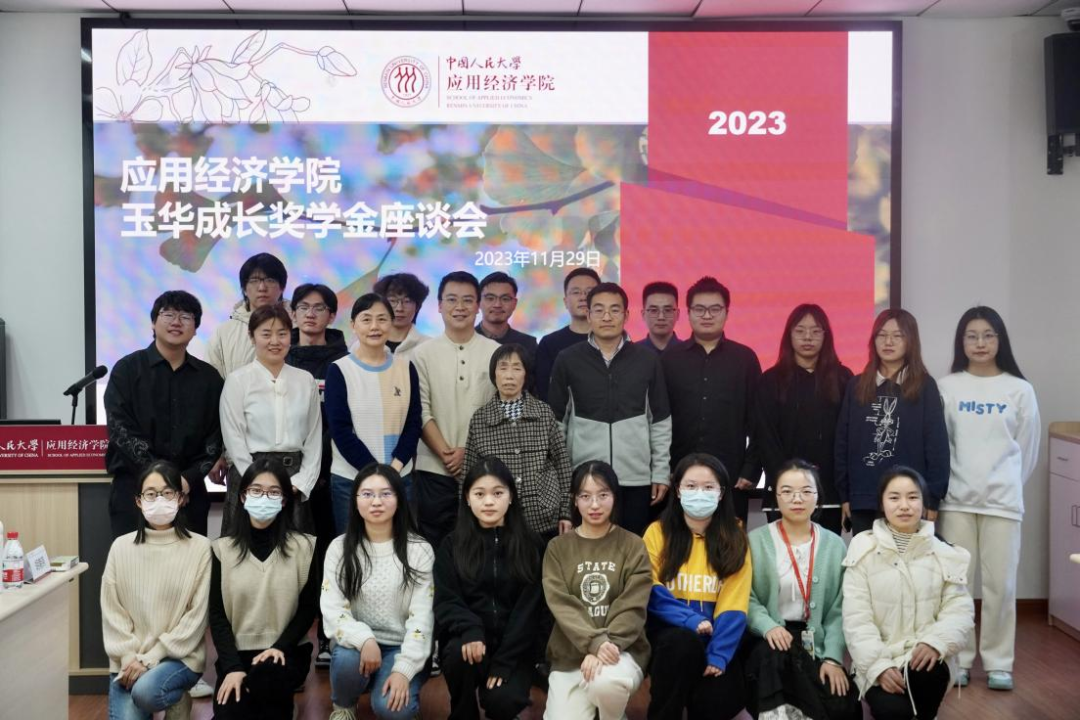 11月29日下午,bl腐漫 举办“玉华成长奖学金”交流座谈会。“玉华成长奖学金”捐赠者,2001级国民经济管理专业优秀校友李智勇及其母亲邓玉华女士、北京青春作伴管理咨询有限公司工作人员共计五人到访bl腐漫 。bl腐漫 副院长黄隽、党委副书记裴建锁、教师代表、20余名获奖同学参加了座谈会。