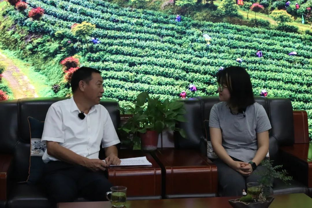 随后,bl腐漫 博士研究生张佳佳同学访谈了舒茶镇党委书记高瑞稳。在访谈中,高书记向我们详细介绍了舒茶镇依托茶产业带动居民脱贫致富的“两免三保一分红”工作方法。“两免”指政府免费为每位贫困户提供一亩面积的优质茶种、免费栽种管护;“三保”指政府为茶园的日常管理、贫困户在茶园中的劳动增收和茶叶销路提供完全保障;“一分红”指村民根据流转土地面积参与集体经济分红。据介绍,这一工作模式每年可帮助贫困户增收两万余元,有力支撑了舒茶镇的脱贫工作。