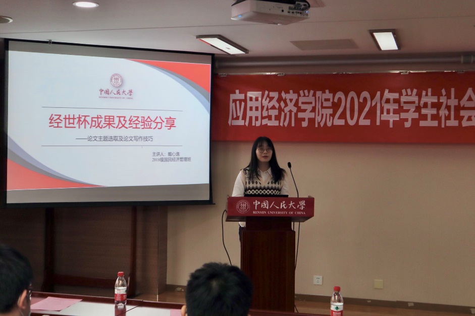 2018级国民经济管理本科生戴心逸是第二届“经世杯”论文竞赛特等奖获得者,同时获得了学校“创新杯”学生课外学术科技作品竞赛特等奖。她结合自己参加“经世杯”比赛的经历,围绕如何确定选题、如何搜集文献和数据以及论文写作规范三个方面介绍经验,并为大家分享了文献和数据来源。