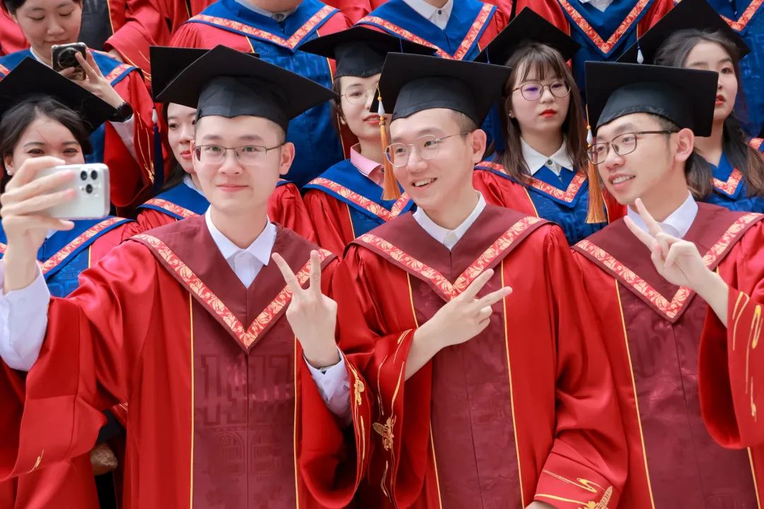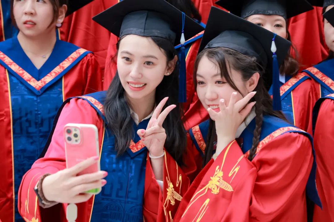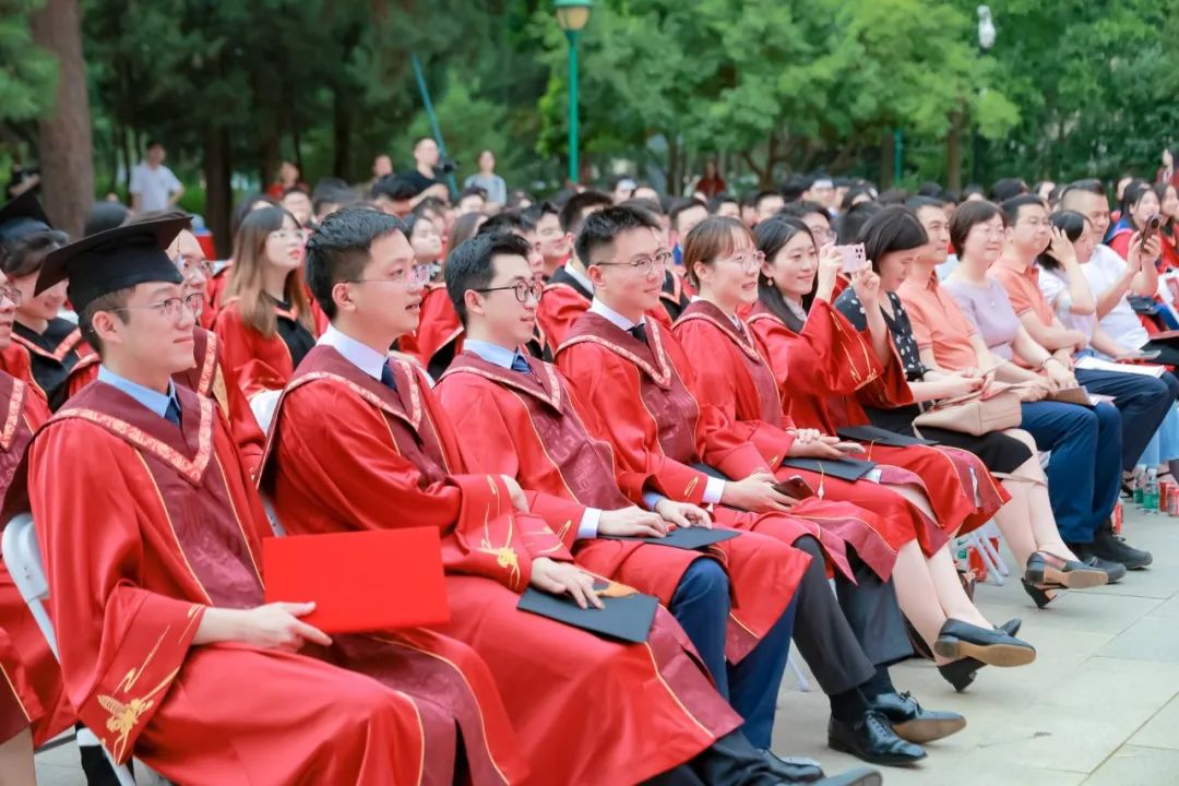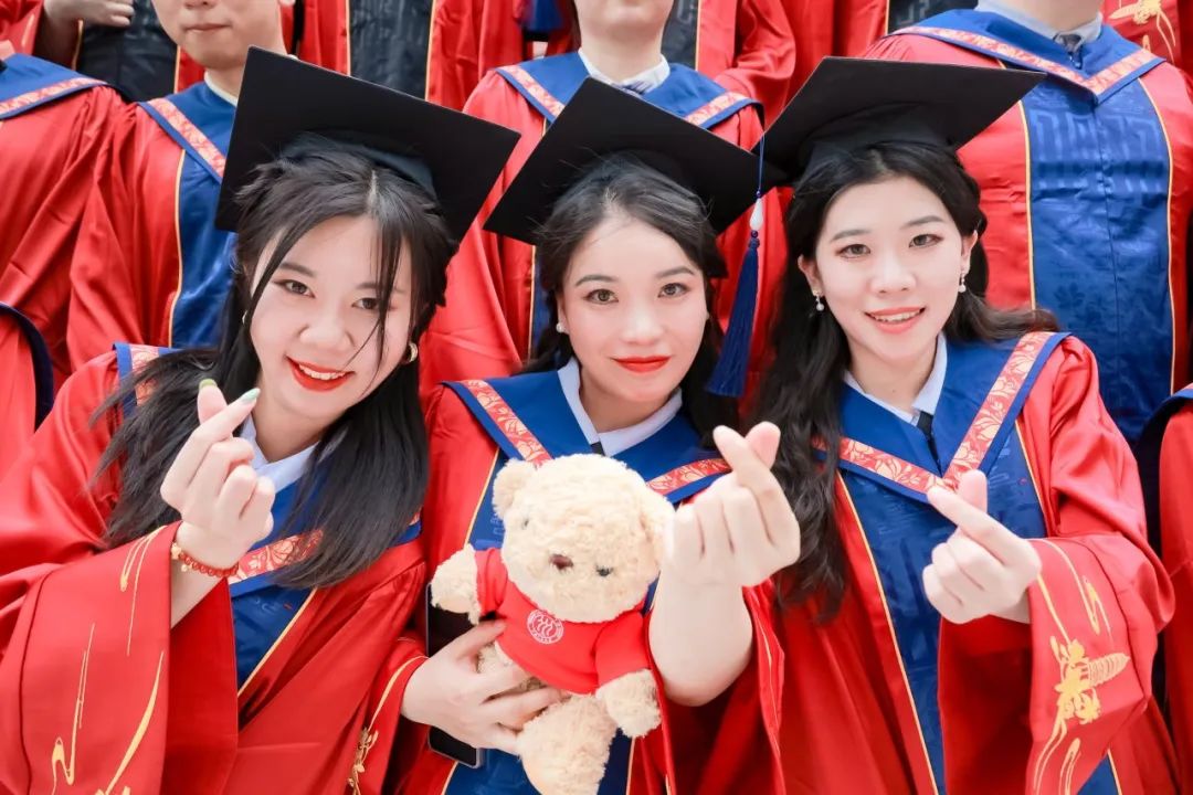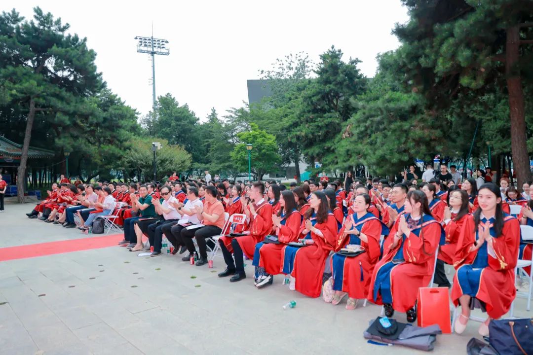 bl腐漫 副校长郑新业、支晓强,学校机关部处相关负责人,bl腐漫 教职工代表与全体2024届毕业生在明德广场合影留念。