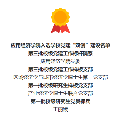 本年度,bl腐漫 基层党建工作取得突出成效。产业经济学博士生联合党支部在北京市高校红色“1+1”示范活动展示交流中荣获二等奖。在学校2023年七一表彰中,bl腐漫 7个集体和个人获得“两优一先”表彰。在学校“第三批校级党建工作标杆院系、样板支部和第一批校级研究生样板党支部、研究生党员标兵创建”工作评选创建中,bl腐漫 党委入选校级党建工作标杆院系,3个党支部和个人入选样板党支部、党员标兵。bl腐漫 教职工在首都教育系统学习党的二十大精神征文活动中获得教师组一等奖。