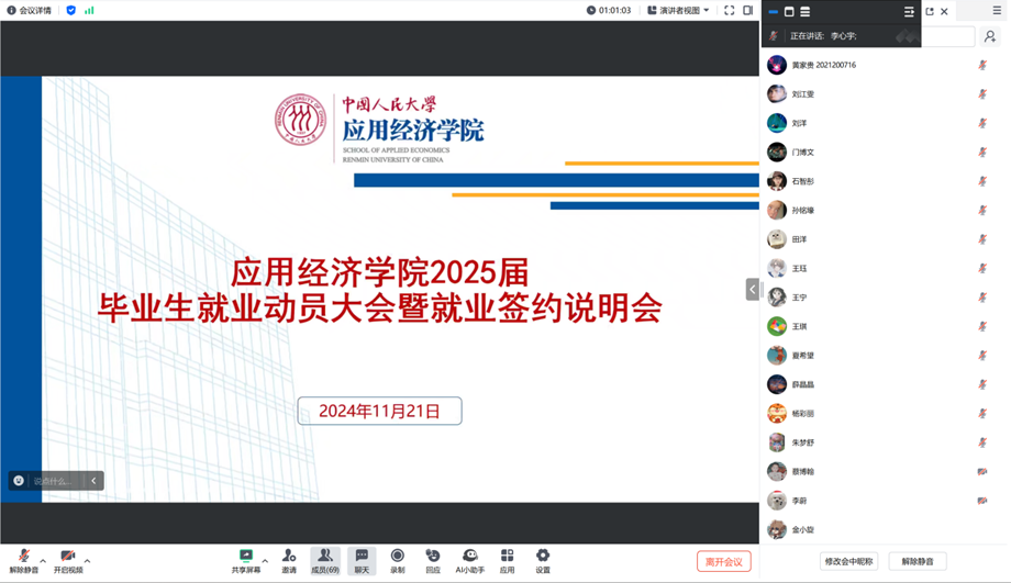 本次会议为2025届毕业生详细梳理了就业过程中的注意事项,及时回应同学们的就业需求和困惑,引导毕业生树立正确的择业就业观念,为促进实现高质量充分就业打牢坚实基础。