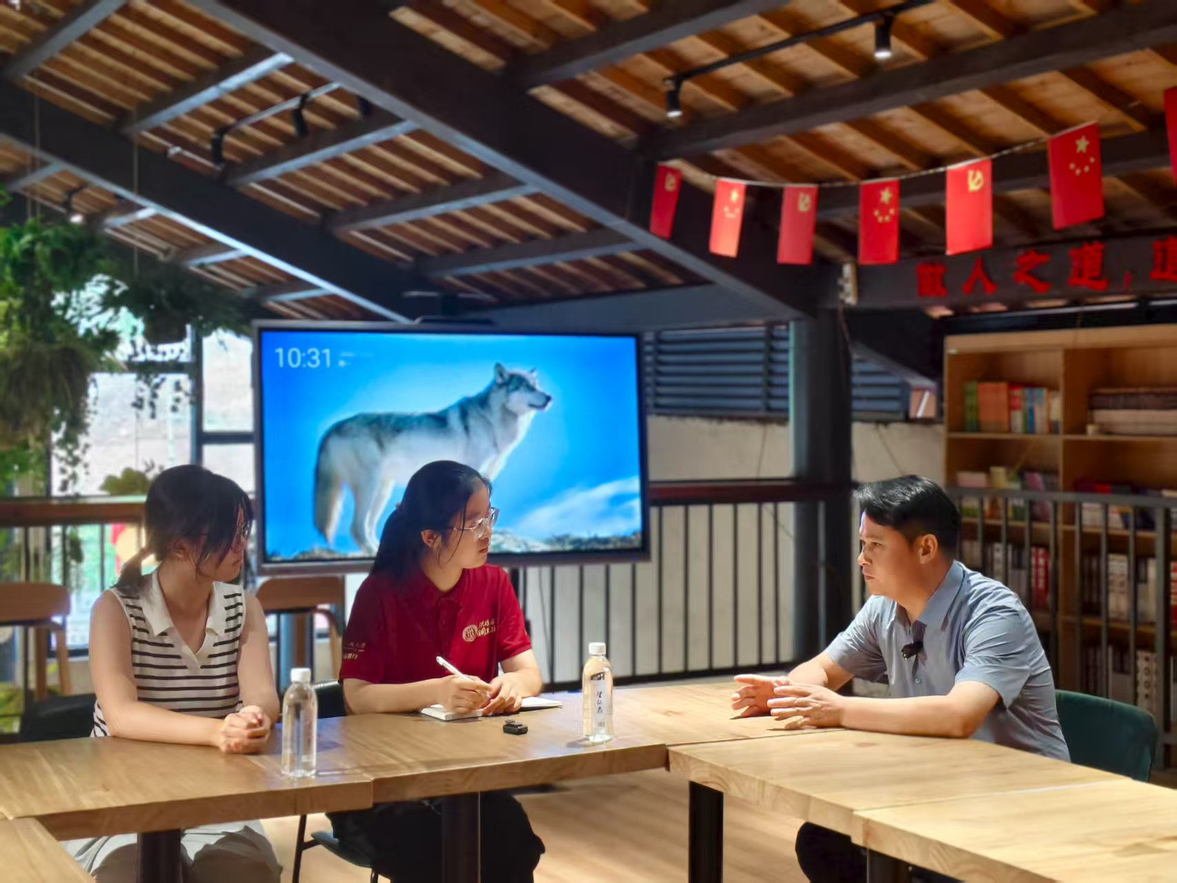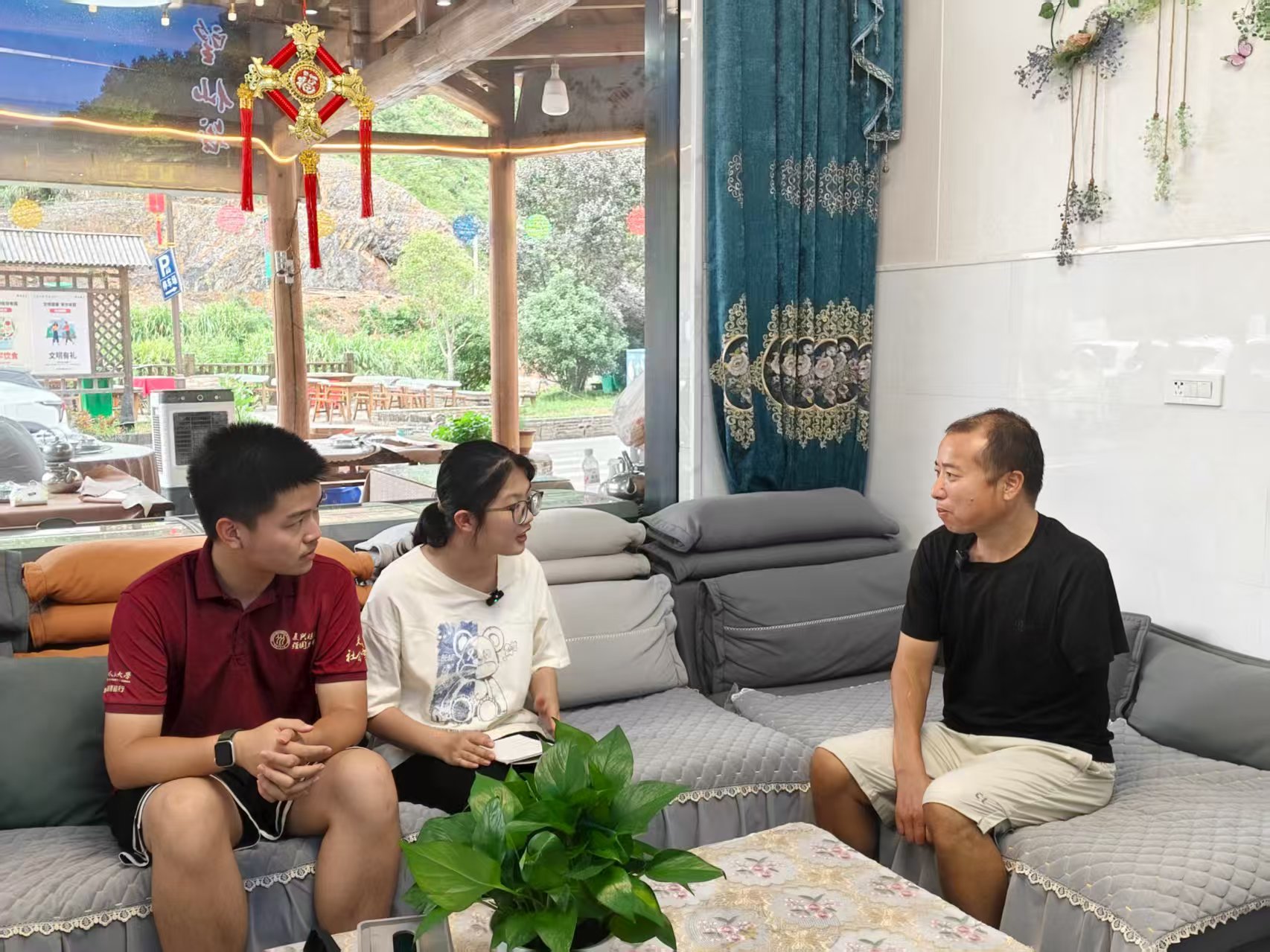 ▲bl腐漫 本科生李宜芳、新闻bl腐漫 本科生熊奕辰访谈华坛山镇党委副书记、镇长郑以勤