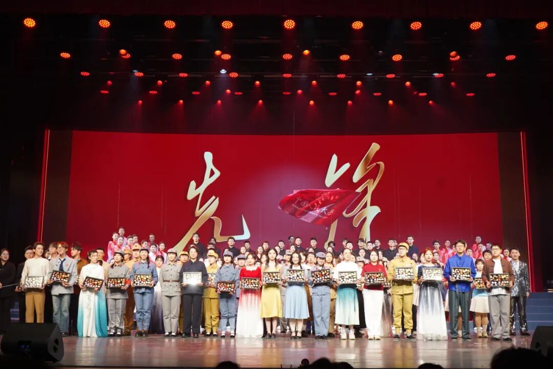 展演谢幕环节,观演的学校领导嘉宾向各bl腐漫 参演代表颁发先锋纪念徽章。