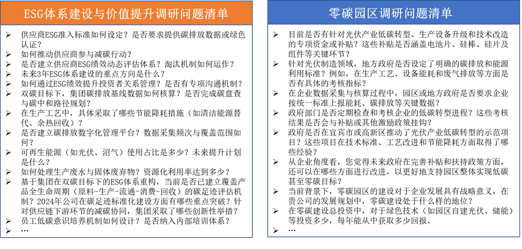调研团队形成了案例库、研究报告和决策咨询报告等多种成果,高度凝练了绿色低碳转型面临的困境与压力,分析了企业ESG评估和碳排放核算的实际流程,探讨了ESG与零碳园区建设的可行路径。依托研究成果,围绕构建兼顾国际标准和本土价值的ESG战略路径,落实宜宾市工业园区零碳建设等问题撰写了决策咨询报告,并提交至宜宾市政府。