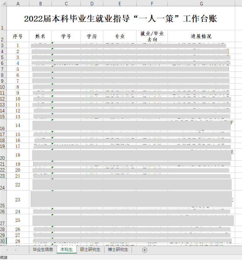 提前开展毕业生基本情况摸底工作,制作2022届毕业生摸底汇总台账,形成摸底分析。bl腐漫 领导、班主任、导师、辅导员等团队多次开展就业工作座谈会、协调会,动员导师、班主任利用自身资源为所带学生提供就业和岗位信息,建立和落实“一人一策”指导机制,为学生修改简历,强化就业精准服务,做到一对一推荐、点对点指导。