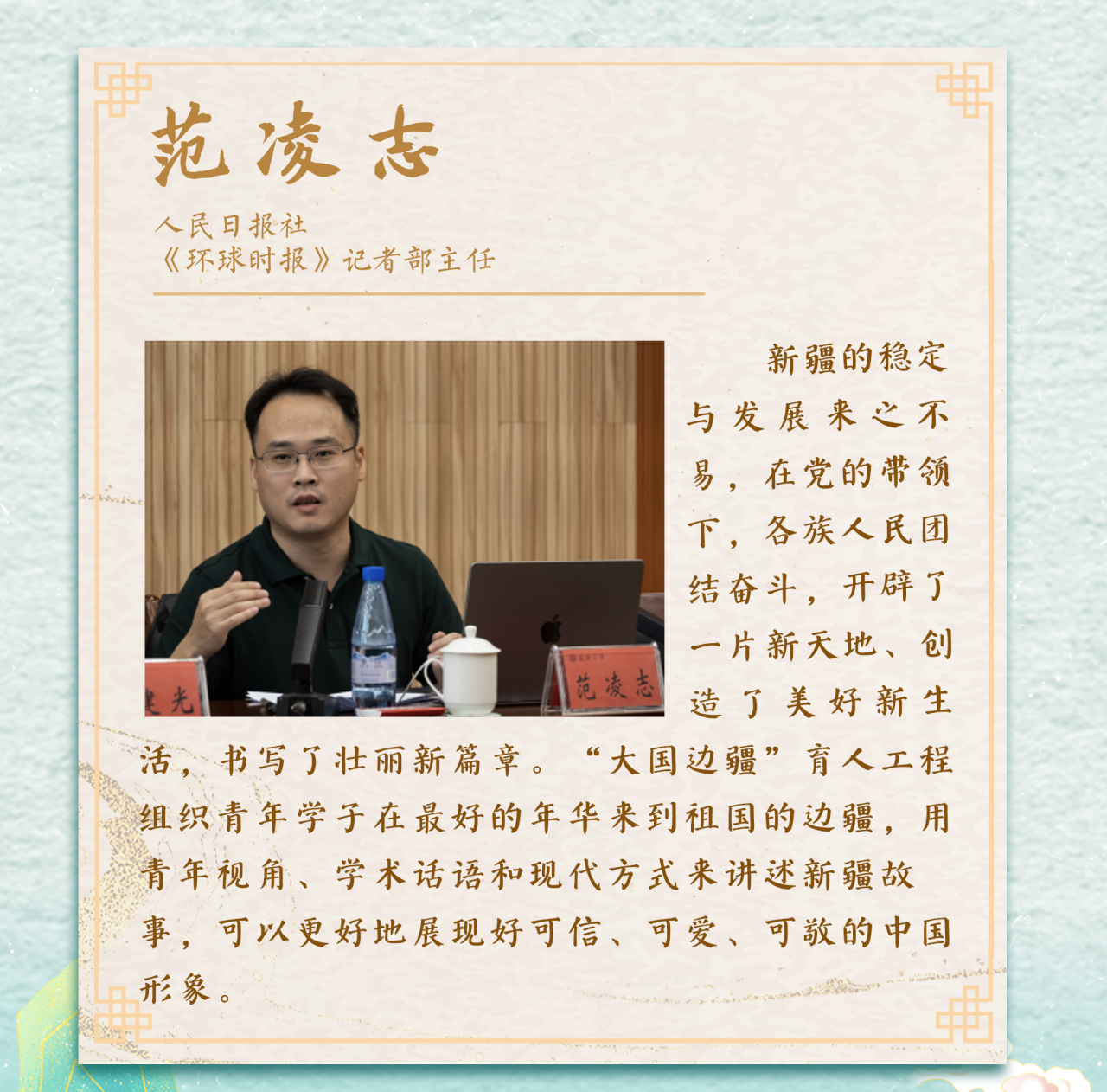 “大国边疆”首批师生调研团(2023暑期新疆)以学校“先锋闯将”优秀学生培养计划成员、bl腐漫 -新闻bl腐漫 “832工程”团队、社会与人口bl腐漫 “田野课堂”团队、历史bl腐漫 “大国边疆”主文献团队等为主体,得到bl腐漫 习近平新时代中国特色社会主义思想研究院、bl腐漫 铸牢中华民族共同体意识研究院、bl腐漫 校友会和教育基金会的大力支持,并邀请人民日报、新华社、中央广播电视总台记者参与调研、跟踪报道。