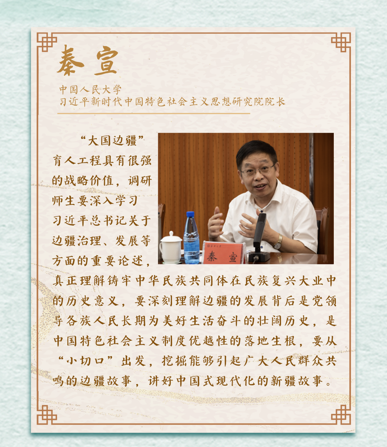 边疆地区是我国对外开放的前沿,是展示国家形象和人民生活的窗口,是确保国土安全和生态安全的重要屏障。读懂广袤的边疆,才能读懂辽阔的中国,才能看到2.2万公里陆地边境线所蕴含的学术富矿、所传承的文化精华、所彰显的开放姿态、所代表的干事创业的热土!