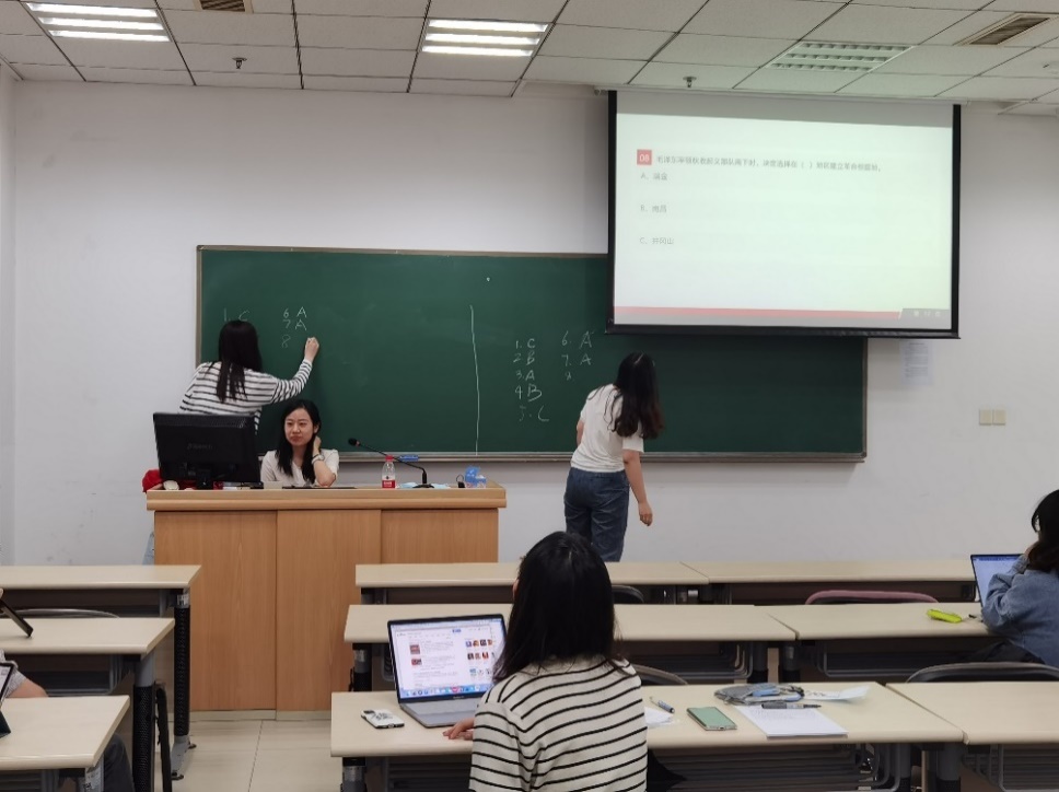 活动开始前,党支部发放学习资料,进行自主学习。在同学们深入学习党史材料后,党支部进行了党史知识竞赛,以更具参与感、互动性的学习形式深化对党史内容的了解掌握。党史知识竞赛过程中,现场气氛十分热烈,各组选手不相上下。