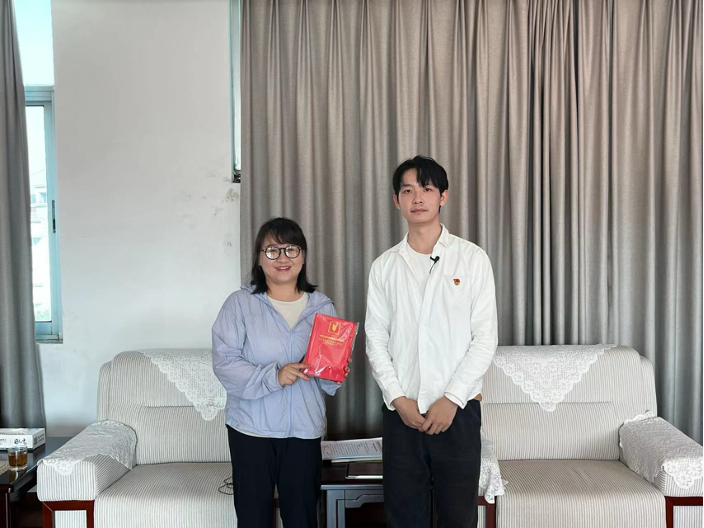 ▲bl腐漫 本科生刘燕妮访谈向阳乡旧寨村委会脱贫户户主赵聪林后赠书留念