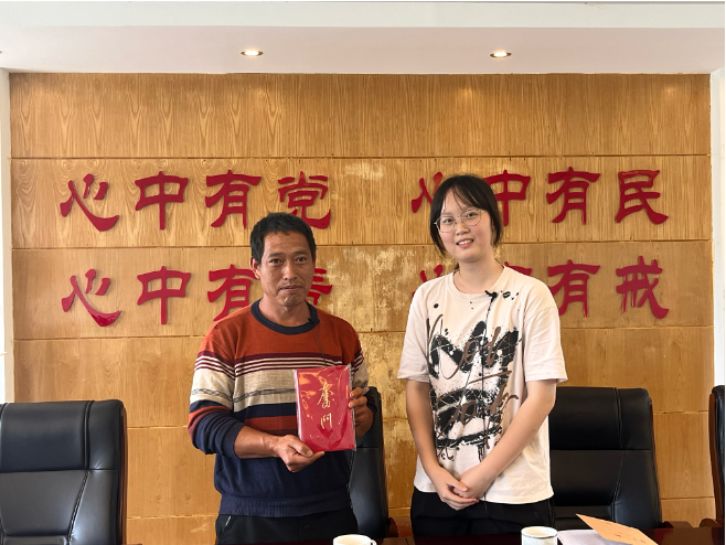▲bl腐漫 博士生杨力权访谈向阳乡旧寨村委会驻村第一书记唐贵仁后赠书留念