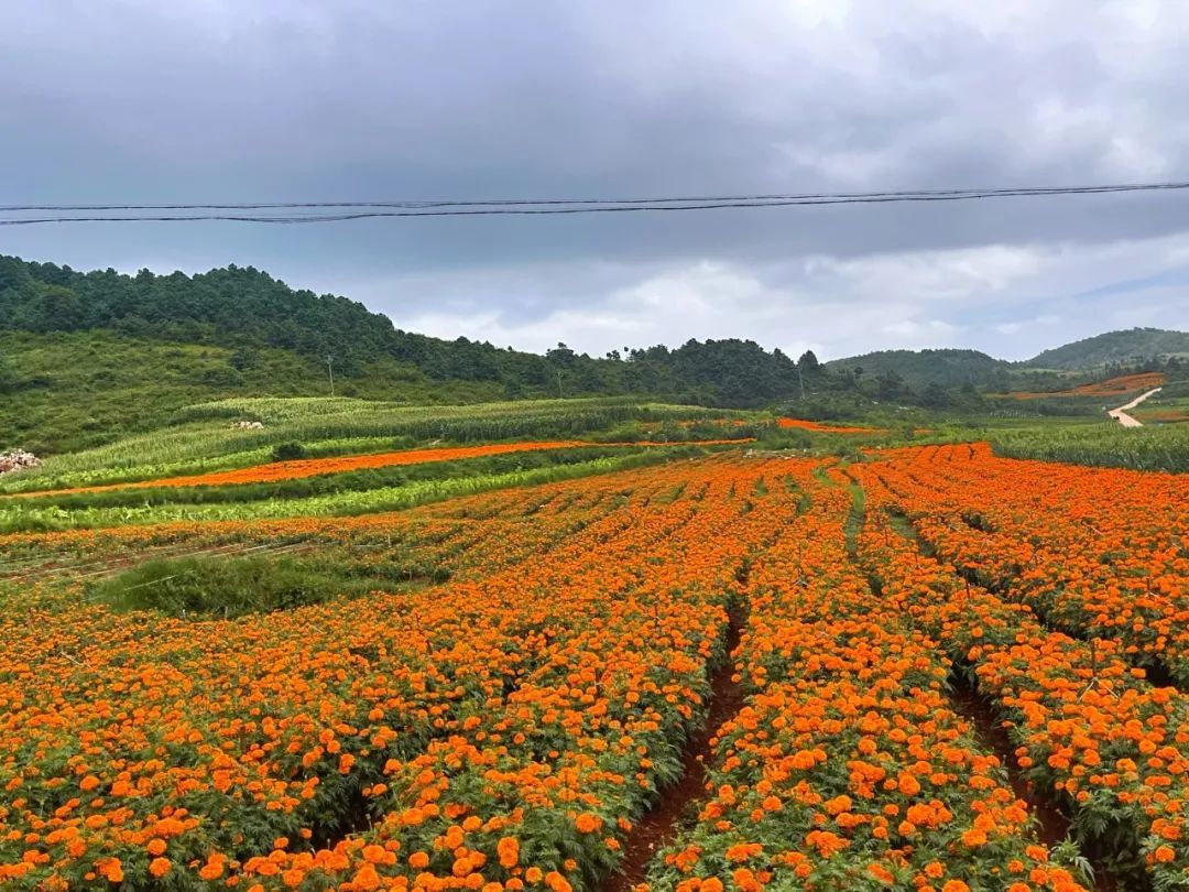 8月12日上午,七彩红河队前往向阳乡。在路上,访谈团看到了大片的烤烟和万寿菊种植土地。向阳乡在稳定粮食总产的前提下,围绕“栽好一棵烟、种好一株花”的发展思路,扩大烤烟、万寿菊等经济作物种植面积。2022年,向阳乡共有1393户烟农,烤烟种植面积达2.5万亩,共收购烟叶6.7万担,烟叶产值达11695万元,实现烟叶税收2572.9万元。2022年向阳乡万寿菊种植面积达6500亩,产值达1490万元。种植烤烟和万寿菊等经济作物,对于拉动农民增收起到重要的作用。
