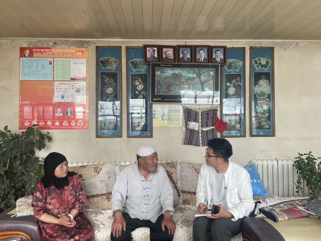 ▲青海民族大学夏吾太老师访谈刚察县哈尔盖镇切察村回族脱贫户唐宝强