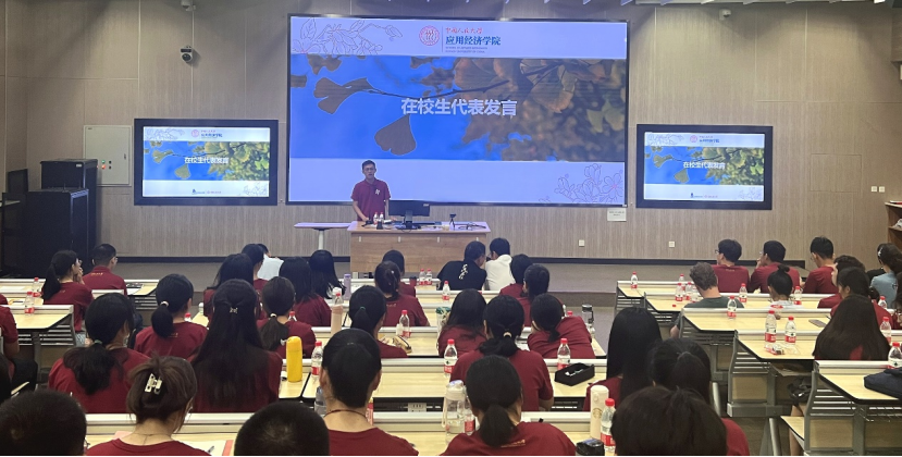 新生代表陈展感恩遇见红色的人大,感谢遇见温暖的应经,期待遇见更好的自己。心中有力量,脚下有方向,自当踔厉奋发,不负韶华。