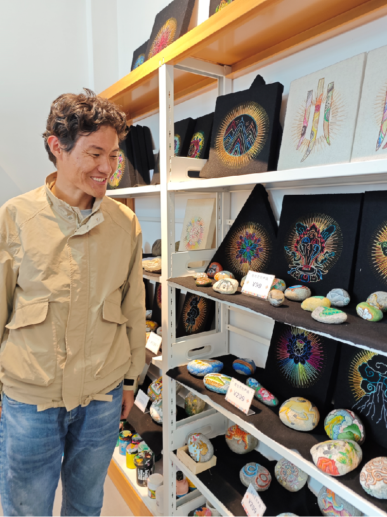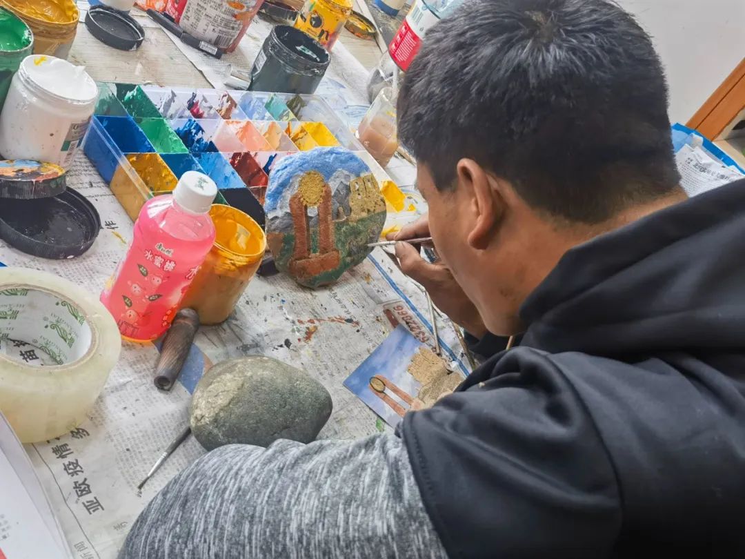 庞达手工坊学徒在进行石头绘画创作