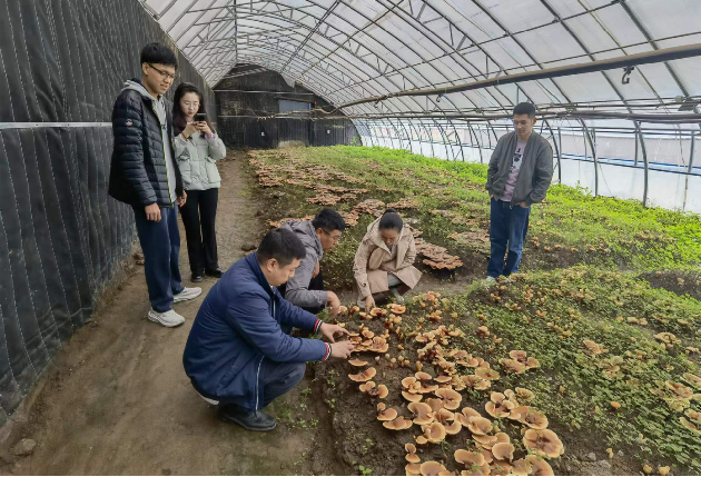访谈团调研亚东鲑鱼产业园中的灵芝温棚