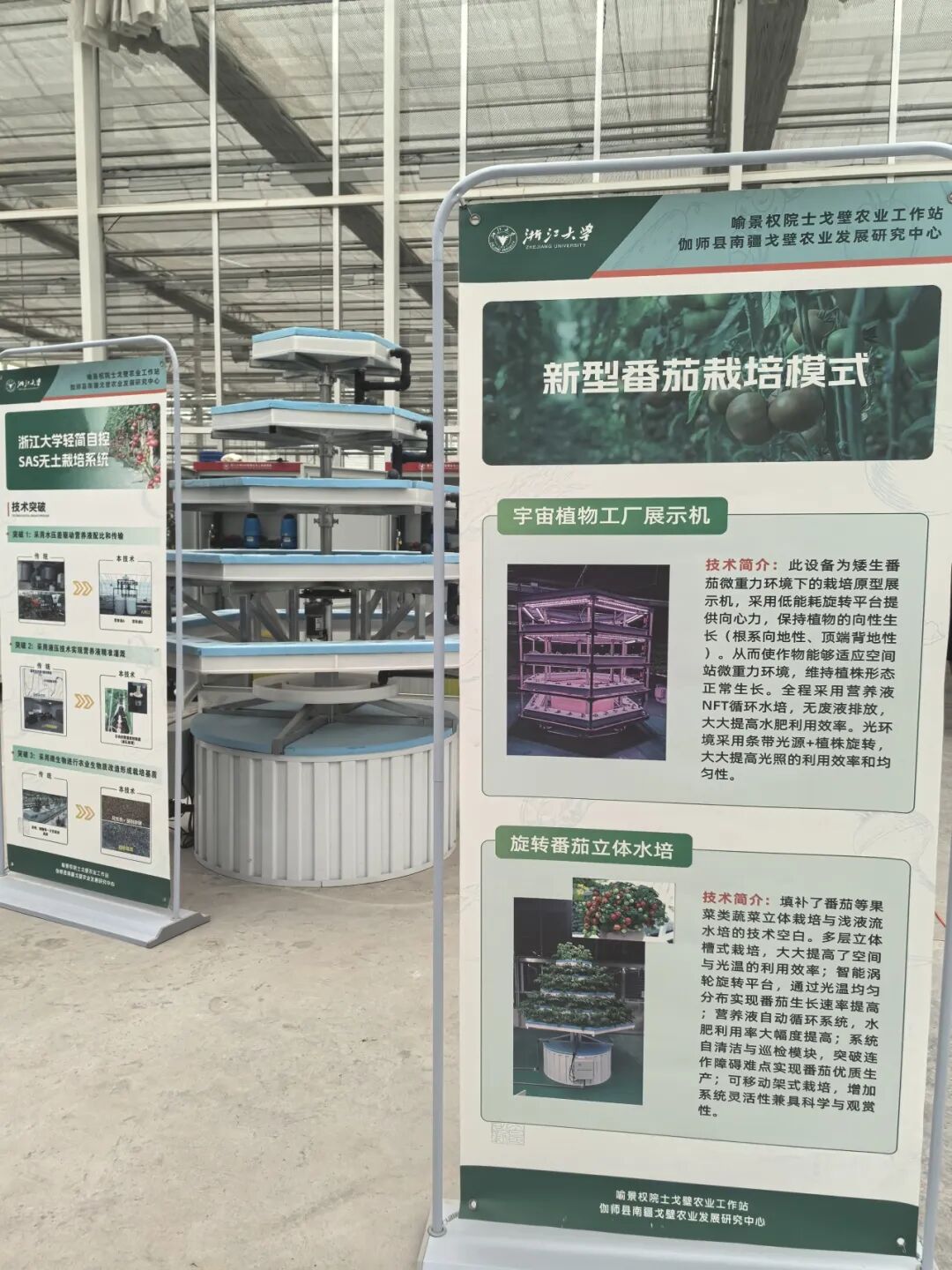 随后,调研团前往南疆戈壁农业发展研究中心、戈壁农业院士工作站。伽师县南疆戈壁农业发展研究中心,由伽师县人民政府、浙江大学、伽师县佳景农业发展有限公司三方共同建立,是一个集决策咨询、科技创新、产业集群、科普教育、示范推广和乡村振兴等为一体的戈农业产业发展综合研究平台。依托这一平台,2024年5月28日自治区科协批复同意设立了"喻景权院士戈壁农业工作站"。研究中心由浙江大学教授、中国工程院院士喻景权领衔,以解决戈壁农业所面临的难点为导向,实施戈壁果蔬种植攻坚计划,加快促进戈壁地区的农业产业化和现代化,提高戈壁地区的粮食安全和果蔬自给自足能力,增加农民收入和就业机会,促进社会进步和文明建设。