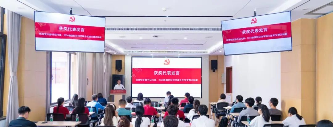 优秀党支部书记代表、2024级国民经济学硕士生党支部书记江林毅发言。他牢记党支部书记“第一责任人”“领头雁”“知心人”三重职责,表示要以更高的政治水平和更强的组织能力,高质量开展工作。
