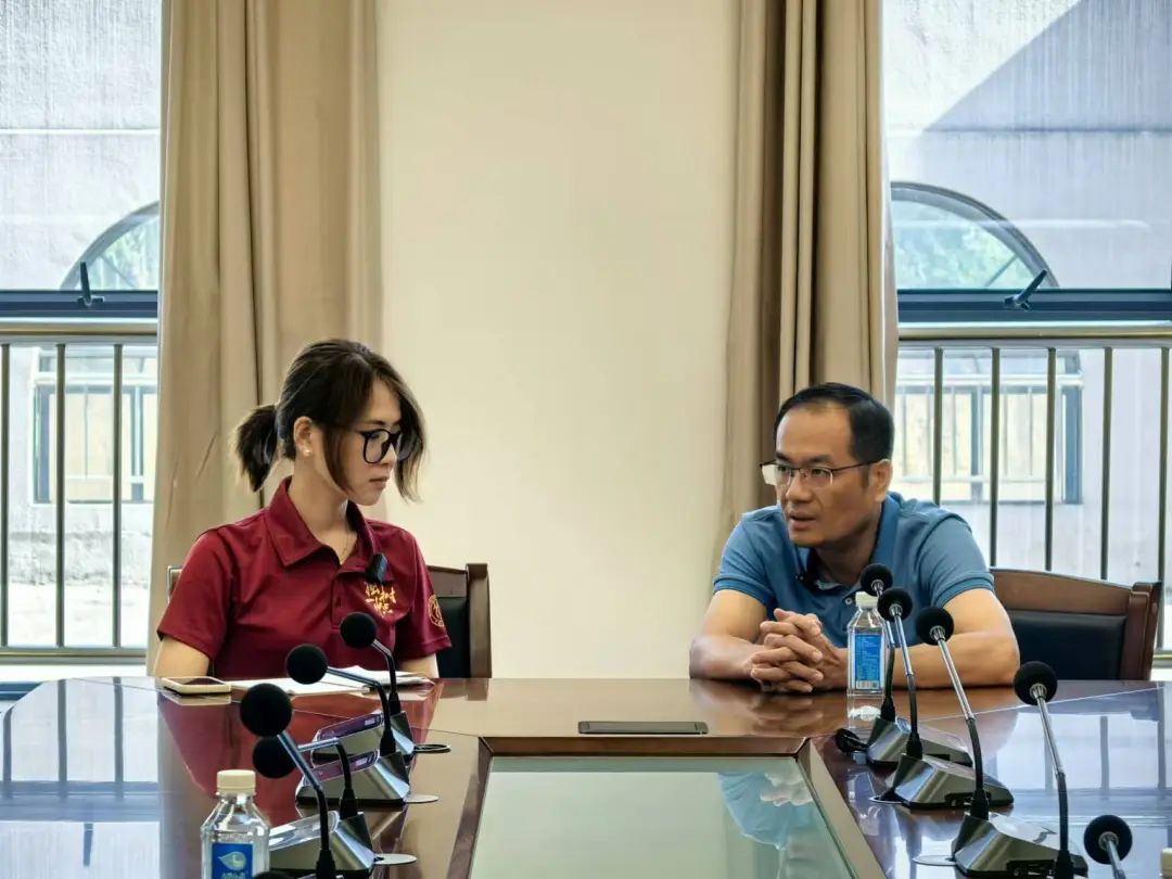 ▲调研团本科生金小旋访谈龙州县龙州镇城南社区驻村第一书记梁景健