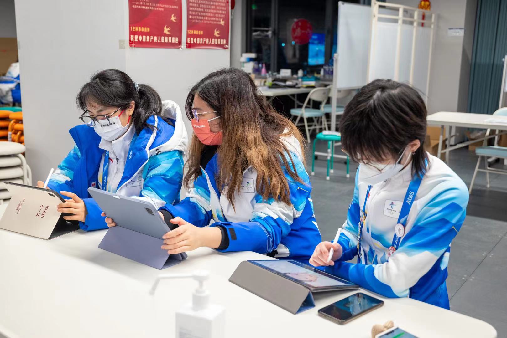 在这里工作的一个多月时间里,我留下了许多难忘的记忆。帮助记者解答他们的疑惑,解决技术问题,让记者感受到我们的热情友好,收到记者们的感谢和点赞,是一件十分有成就感,十分开心的事情。在这里我们可以接触到记者的一线工作,一些常在工作间工作的记者和我们成为了好朋友,在网页上刷新到面前的记者三分钟前发布的新闻,在b站上刷到记者在工作间拍摄的vlog,是一种奇妙的体验。在志愿工作中我也结识了一群热情又可爱的小伙伴,大家一起齐心协力,为冬奥贡献青年力量!