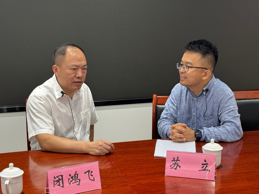 ▲苏立访谈靖西市市委常委闭鸿飞