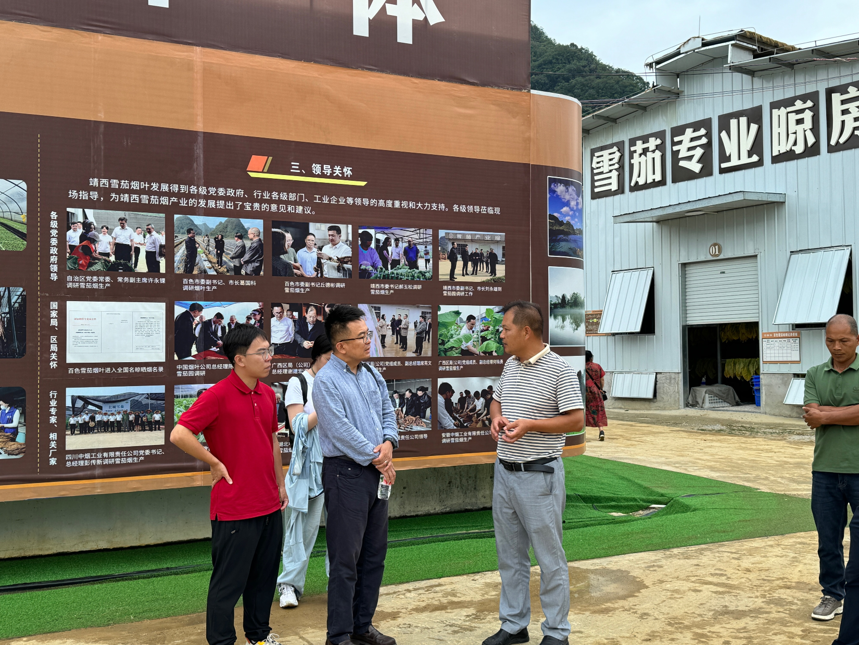 在离开化峒镇后,访谈团前往了新靖镇隆江雪茄庄园。相较传统烤烟而言,雪茄采取柔性晾制工艺,制作过程更复杂,价格更高,其生产提高了烟叶种植的附加值。靖西于2022年开始建设雪茄产业园,以促进靖西乡村振兴的进程,投入1600万资金用于建设晾晒房、遮阴、抽湿设施等,目前设标准化晾房32座。