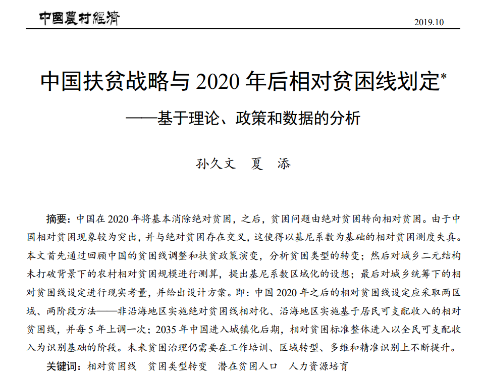 我院孙久文教授获第九届“中国农村发展研究奖”论文提名奖