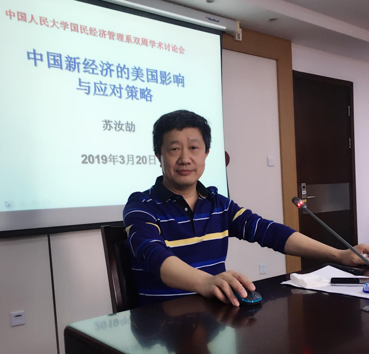 2019年3月20日,bl腐漫 国民经济管理系双周学术研讨会如期召开。会议由郑超愚教授主持,苏汝劼副教授作《中国新经济的美国影响与应对策略》的主题研究报告。2019/03/23